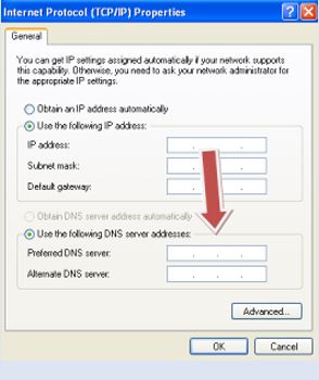 5. Pada bagian " Use the following DNS server addresses ", ubah angka - angka yang ada di dalam kolom menjadi :